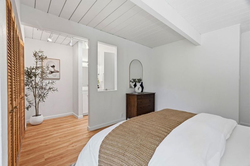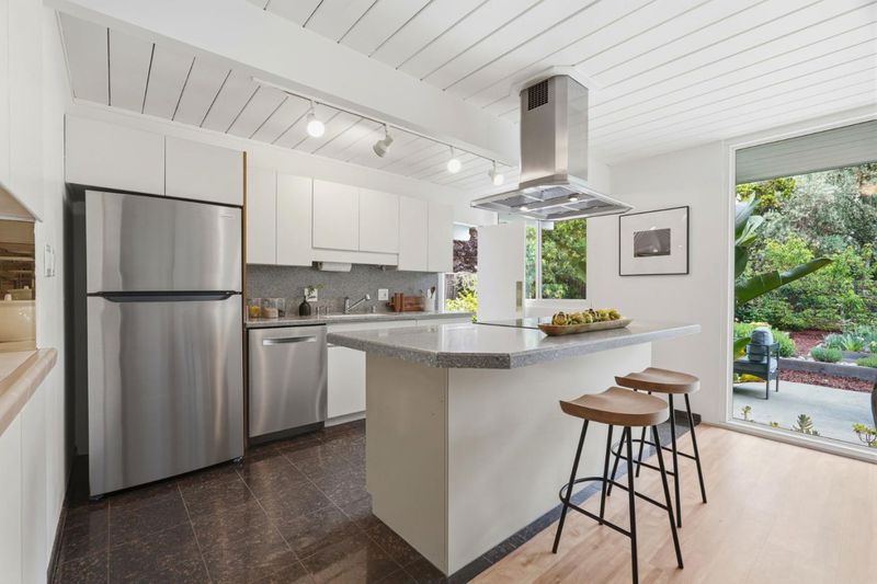 A rare opportunity to own a beautifully updated Eichler, nestled on a spacious corner lot in a quiet court in the highly desirable Panama Park neighborhood. This classic blends mid-century modern charm with thoughtful upgrades and tons of natural lighting throughout. This ultra private home showcases iconic architectural details including warm mahogany paneling, clean lines, radiant heat, and seamless indoor-outdoor flow. Updated kitchen and bathrooms, fresh interior/exterior paint and new flooring. Designed for comfort and efficiency, the home includes owned solar panels with a Tesla inverter, insulated and replaced exterior walls, and an insulated foam roof over tar and gravel. Additional improvements include solid wood interior doors, motorized and manual rolling shades, sealed rolling garage doors, and a finished garage with laminate tile flooring. The yard features water-wise landscaping, offering beauty with low maintenance, and ample space for entertaining, relaxing, or future possibilities. A truly stunning Eichler masterpiece minutes away from award winning schools, including Stocklmeir Elementary, Cupertino Middle & Fremont high. Prime location minutes away from Panama Park and less than 2 miles to Apple Park, Cupertino Main Street, and the bustling downtown Sunnyvale.