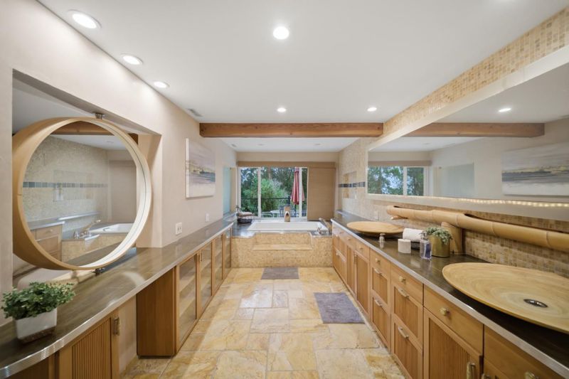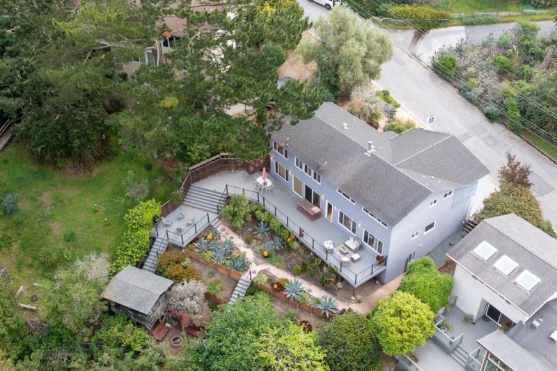 Situated in the exclusive Linda Mar neighborhood, this rare gem offers an exceptional blend of privacy, expansive lot size, and serene ocean views. This meticulously designed home features a main level w/4 spacious br, 2 ba, kitchen, living room & dining area. The gourmet kitchen is a chefs dream, anchored by a $7k 3 yr old Thermador range, $15k 3 yr old Sub-Zero refrigerator, an apron sink, & granite countertops. In the open living & dining areas, a wall of windows invites brilliant natural light & showcases a tree-lined vista w/filtered views of the Pacific. The residence is uniquely versatile, featuring 2 distinct family rooms. For those requiring extra space, one of these rooms can easily serve as a 6th bedroom at the lower level. The middle level also houses a vast & luxurious primary suite, complete w/walk-in closet, & a 200-square-foot spa-like bathroom featuring a steam shower, soaking tub, & bamboo waterfall faucets. Outdoor living is equally impressive, centered around a massive 4 yr old $100k 1,400-square-foot deck & a indoor hot tub cottage located just steps away from the primary suite. The fully landscaped, terraced grounds include a built-in firepit. This is an exquisite opportunity to own a home that perfectly balances luxury with functional, flexible living.