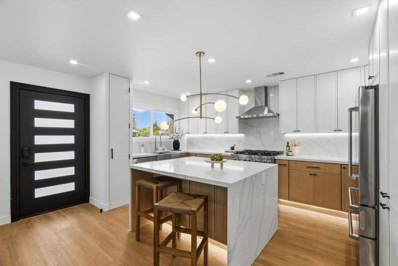 This beautifully remodeled Cambrian residence has been thoughtfully re-built with attention to detail. The open concept floor-plan offers 3 beds/2 baths, highlighted by a chef's kitchen with mini shaker cabinetry, Z-Line appliances, wine cooler, and a waterfall island for casual dining. Major upgrades provide lasting peace of mind, including a new composite roof, new electrical, plumbing, and HVAC systems. Cat6 wiring runs throughout, and the home is hardwired for an exterior security camera system. The backyard is a true entertainers dream complete with a sparkling pool, multiple lounge areas, covered gazebo, and a built-in BBQ. Whether hosting summer gatherings or enjoying quiet evenings at home, the outdoor spaces provide versatility. The primary suite offers a private retreat with direct access to the backyard, creating a seamless extension of indoor/outdoor living. Both bathrooms evoke a spa-like experience, appointed with Porcelanosa tiling, illuminated niches, and smart bidet toilets. The garage is EV-ready with a 220V hookup and an upgraded electrical panel for future solar integration. A modern steel-and-glass garage door leans into the homes contemporary curb appeal. Access to top rated schools including Oster Elementary, Dartmouth Middle, and Branham High.