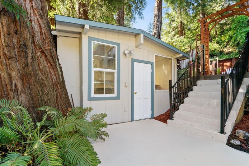 OPEN Sat 4/11 & Sun 4/12 1-4pm. Top-rated Schools, incredible Price, ideal Scotts Valley commute location! This tranquil 3 bedroom, 2 bath home, set at the edge of the exclusive Multiversity Campus, offers comfort and versatility. A skylit living room centers the home with a custom fireplace - gas, kitchen and dining area. The layout provides great separation of space with an upstairs bedroom and bath. A usable front yard, lawn, layered patios and a covered front porch adds to the charm. The detached workshop provides flexible options for an art studio or office. There is a separate utility room with washer, dryer and freezer plus basement storage. Over $30,000 in recent improvements - including new interior paint, flooring, carpet, exterior paint and much more. Positioned for both convenience and lifestyle, the location offers immediate access to Highway 17, placing Los Gatos just 12 miles away and the Santa Cruz coastline within six. Baymonte Preschool and Vine Hill Elementary is moments away, with Glenwood Preserve's trails, along with Scotts Valley's dining, parks, and shopping, all within close reach. First time on the market in 48 years, this charming home, in a friendly and walkable neighborhood, is ready for you to make it yours!