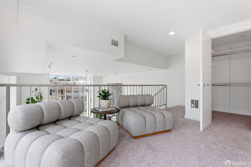 Welcome to this beautifully remodeled corner loft residence at 1800 Bryant Street, where expansive windows, soaring ceilings, and modern design create a striking urban space. This 1-bedroom, 2-bath loft features large corner windows that flood the home with natural light, highlighting the open layout, polished concrete floors, and clean contemporary finishes that define the home's modern industrial aesthetic. The remodeled kitchen showcases designer wood cabinetry, elegant stone countertops & stainless steel appliances, creating a warm and sophisticated centerpiece for the living space. The open-concept main level offers a seamless flow between the living, dining, and kitchen areas, making the space ideal for both entertaining and everyday living. Upstairs, the lofted bedroom retreat provides privacy and flexibility. As a corner unit, the home enjoys exceptional light exposure and dynamic outlooks toward Downtown San Francisco, enhancing the sense of openness and connection to the city. Residents enjoy access to a beautifully landscaped common courtyard, ideal for relaxing or lounging in the sun. The unit also includes in-unit washer/drier and one-car parking. Ideally positioned at the crossroads of the Mission District and Potrero Hill, the residence offers outstanding walkability to some of San Francisco's most celebrated restaurants, cafes, bars, and boutique shopping. Enjoy easy access to both neighborhoods' vibrant dining scenes while benefiting from convenient proximity to transit, tech shuttles, and major commuter routes. Don't miss this rare opportunity to own a bright, architectural loft in one of San Francisco's most energetic and walkable neighborhoods.