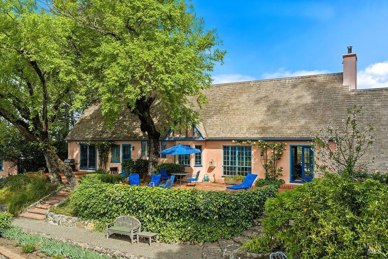 A Rare Canvas with Expansive Views and Ultimate Privacy on Fitch Mountain. Opportunities of this scale in Healdsburg are few and far between. Situated on almost an acre lot, 1212 N Fitch Mountain Road is the ultimate foundation for a legacy estate. The 3298 sq. ft. main home has personality and unique architectural design after the style of renowned British architect CFA Voysey. The downstairs has an open living room with abundant natural light and outdoor access for an indoor outdoor living feel. The primary bedroom has dual closets, views, and beautiful french doors that open to the back patio. The primary bathroom is spacious with a 6 foot tub, walk in shower, and double sinks. Additionally, an ensuite guest bedroom lives downstairs with three bedrooms with built-in bookshelves, plus a full bathroom and additional storage room upstairs. In 2012, the estate was elevated with the addition of a massive garage and shop, topped by a private 836 sq. ft. ADU. This one-bedroom second unit offers space for guests or significant rental income potential. Surrounded by expansive views throughout the property and a beautifully curated garden paradise- 18 fruit trees, a large vegetable garden, and several rose gardens- along with a Ptanque court and multiple outdoor seating and dining spaces, the property is your private sanctuary to enjoy, all while being 5 minutes to town. With zoning that comfortably accommodates a pool, pool house, or further expansion, this isn't just a home; it's the foundation for your Sonoma County legacy.