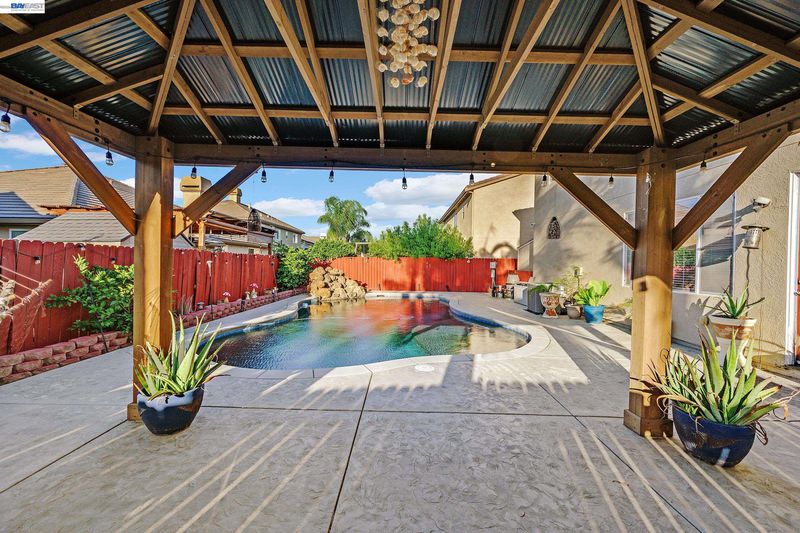 5 bedrooms, 3.5 baths, and over 3,000 sq ft of space that actually works for how people live. The layout keeps common areas open and connected while giving bedrooms the separation they need, so there's room to spread out without feeling cramped. The kitchen is built for real use: granite countertops, stainless steel appliances, and an island that earns its footprint. It flows naturally into the main living area, making everyday routines and hosting feel effortless. The primary suite upstairs is generously sized with room to unwind, and the secondary bedrooms offer enough space for guests, a home office, a gym, or whatever the setup calls for. Out back, the backyard is built around a custom pool designed specifically for this home. The waterfall feature sets the tone, giving the space a resort feel that holds up whether you're unwinding solo or hosting a full crowd. This is not a standard builder add-on. It was designed to be the centerpiece of the outdoor space, and it shows. Solar panels are already in place, and the three-car garage handles storage, projects, or a third vehicle without compromise. This one checks the boxes that are hard to find together at this price point.