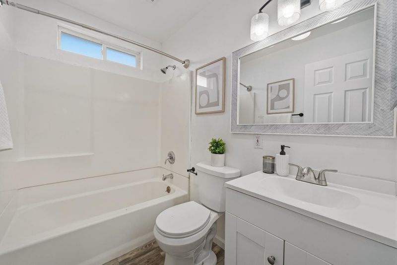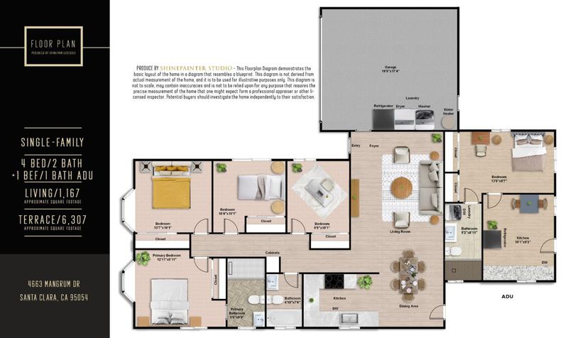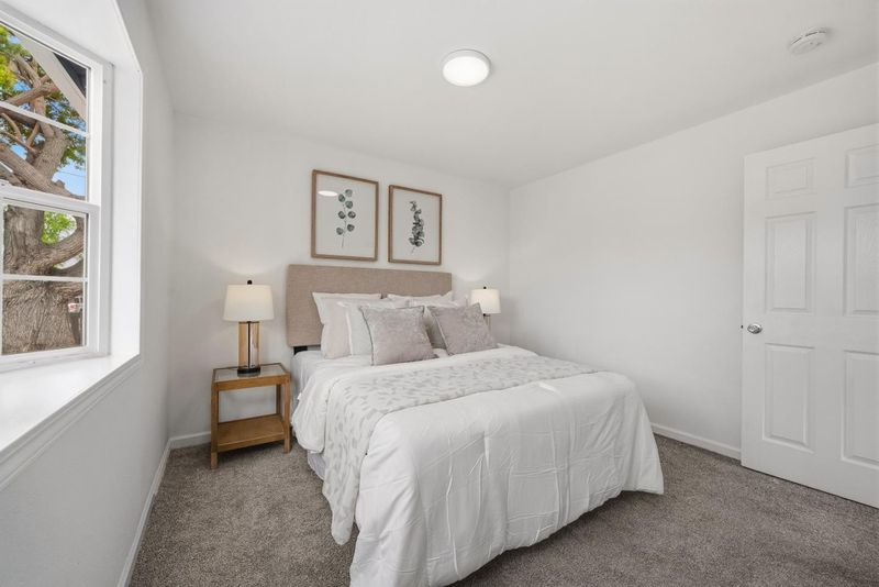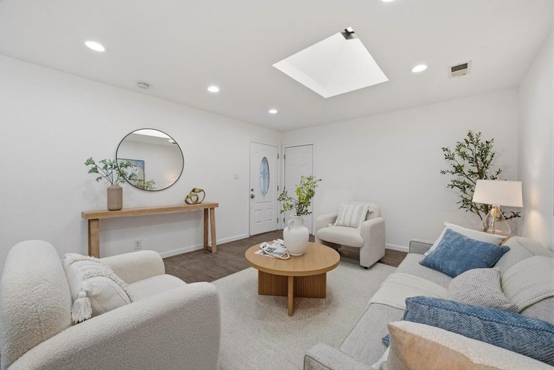 Welcome to this charming single-family home with 4 beds and 2 baths (1,167 sqft), plus an ADU with 1 bed and 1 bath (362 sqft). The home features a front yard with good privacy. Inside, a spacious living room with skylights and recessed lighting flows into the updated gourmet kitchen with quartz countertops and backsplash, stainless steel appliances, and ample cabinetry, connected to the dining area with a stylish ceiling light. A door opens to the backyard for indoor-outdoor living. The hallway includes sun tunnels. The primary suite is at the front with a bay window and en-suite bath with stall shower. A second bedroom also has a front-facing bay window, plus two additional bedrooms. Fresh interior and exterior paint throughout. The hallway bathroom offers a shower over tub. The 2025-built ADU in the backyard has its own entrance, a modern kitchen with quartz countertops and stainless steel appliances, a bedroom with wall unit AC, and an updated bathroom with stall shower and laundry, offering great rental income potential. Convenient location with 7 minutes drive to santa clara convention center, easy access to Hwy 101, 237, Lawrence, and San Tomas Expy, and a short commute to major tech companies. Do not miss this great opportunity!