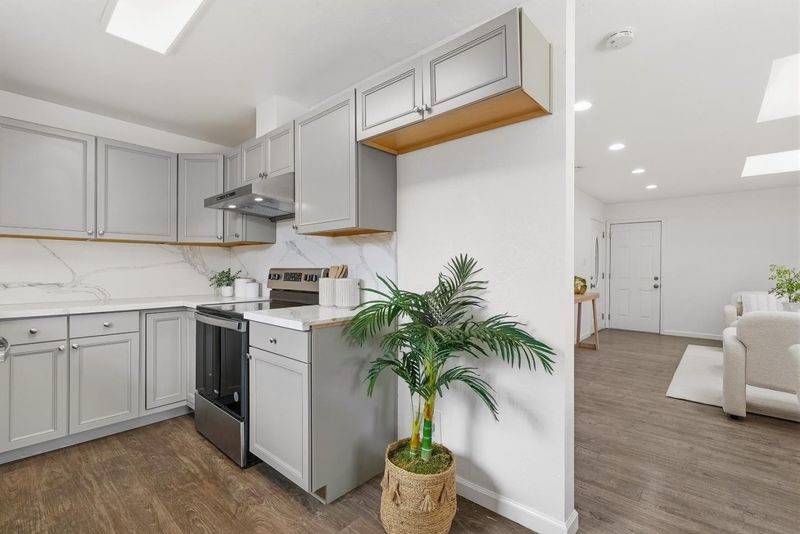 - Countertop - Quartz, Dishwasher, Garbage Disposal, Hood Over Range, Oven Range - Electric