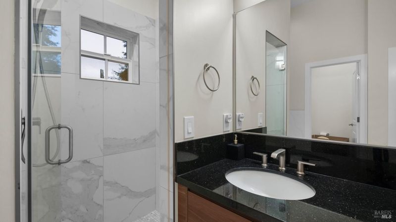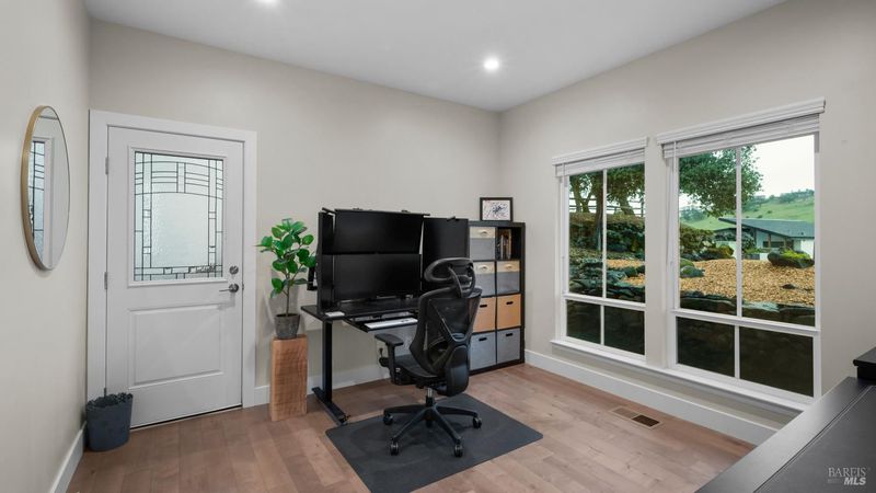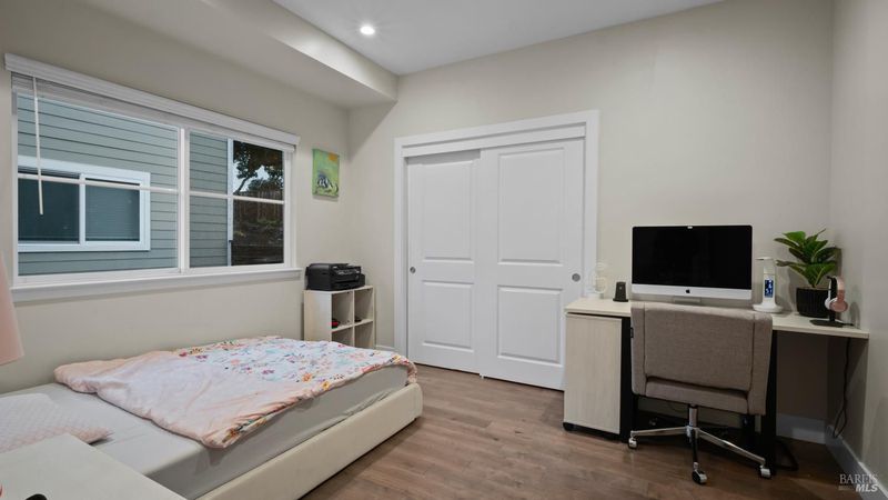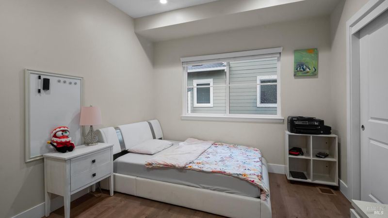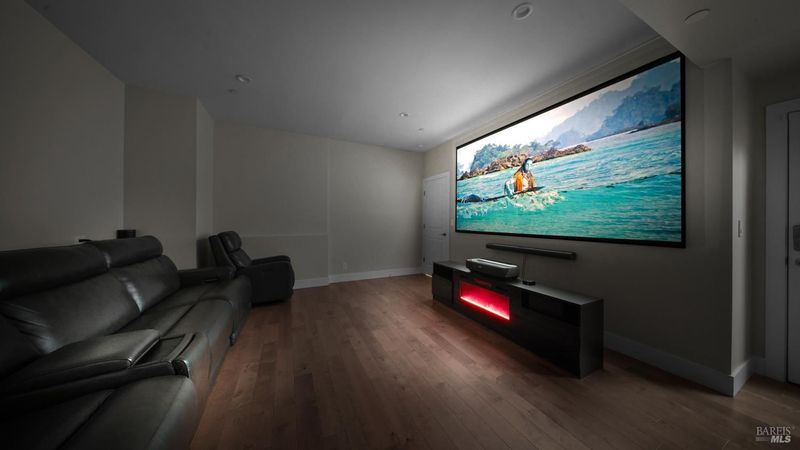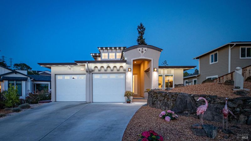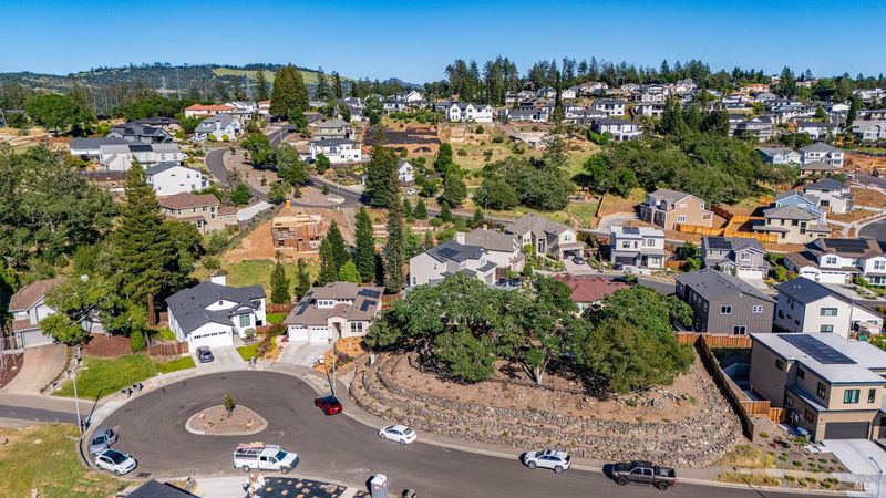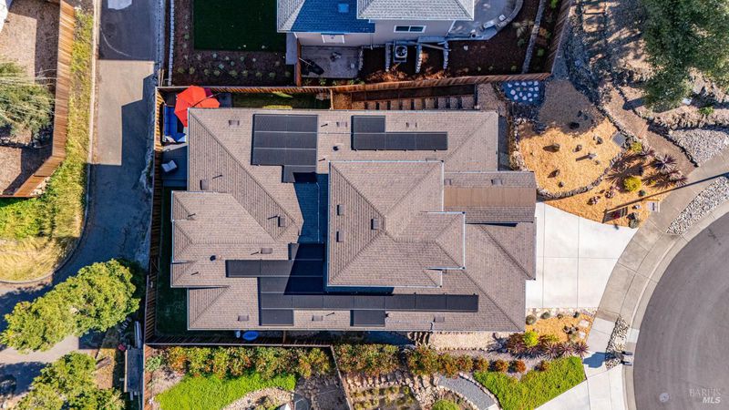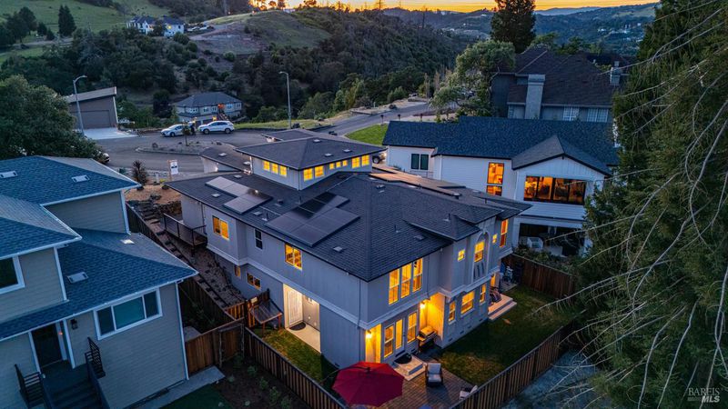 Energy efficient Fountaingrove living with flexibility, efficiency, and modern luxury. Built in 2020 and offering approximately 3,290 sq ft, this expansive 6-bedroom, 4-bathroom residence features a fully self-contained guest suite with private entrance, dining area, bedroom, and full bath, ideal for multi-generational living, extended stays, or income potential. Energy efficiency takes center stage with owned Tesla solar and Tesla Powerwall, complemented by a tankless water heater, central A/C, and EV charging outlet, designed for sustainable living and long-term savings.An elegant, adult-friendly foyer welcomes you in, anchored by a designer feature wall with a picture-frame TV, perfect for elevated entertaining. The main level opens to a spacious, light-filled living room with beautiful tree-lined views and ample space to gather and unwind.Inside, the home showcases European-inspired design with custom built-ins, artfully integrated shelving, and designer accent lighting throughout. The modern kitchen is equipped with stainless steel appliances, gas cooktop, double oven, and custom soft-close cabinetry with pull-outs, perfectly suited for both everyday living and entertaining.The primary suite offers a private retreat with a soaking tub, glass-enclosed walk-in tiled shower, and dual vanities. Downstairs, a custom-built home theater takes center stage, featuring a state-of-the-art projector, approximately 10-foot 4K Ultra screen, and Sonos sound system, delivering a fully immersive movie experience that takes family movie nights to the next level. Situated on a private courtyard setting with distant hillside views, the property enjoys a rare location directly adjacent to a charming community park with mature oak trees, bocce ball, and picnic areas, seamlessly extending your outdoor living space. Additional features include new fencing, composite decking, and landscaped garden areas. Located just minutes from the Fountaingrove Golf & Athletic Club, Paradise Ridge Winery, and scenic parks and trails, this is a rare opportunity to own a versatile, energy-efficient home in one of Santa Rosa's most sought-after communities.