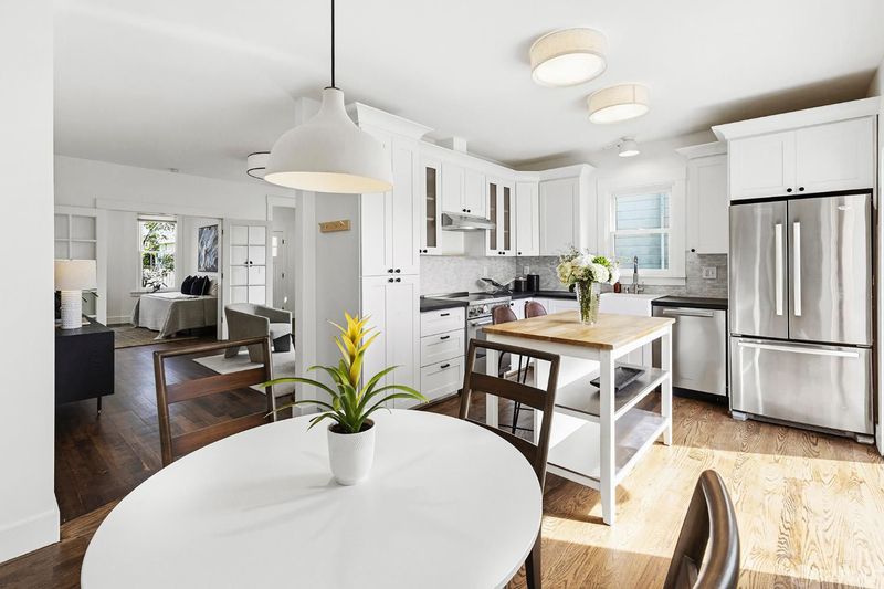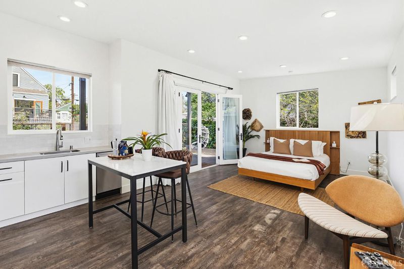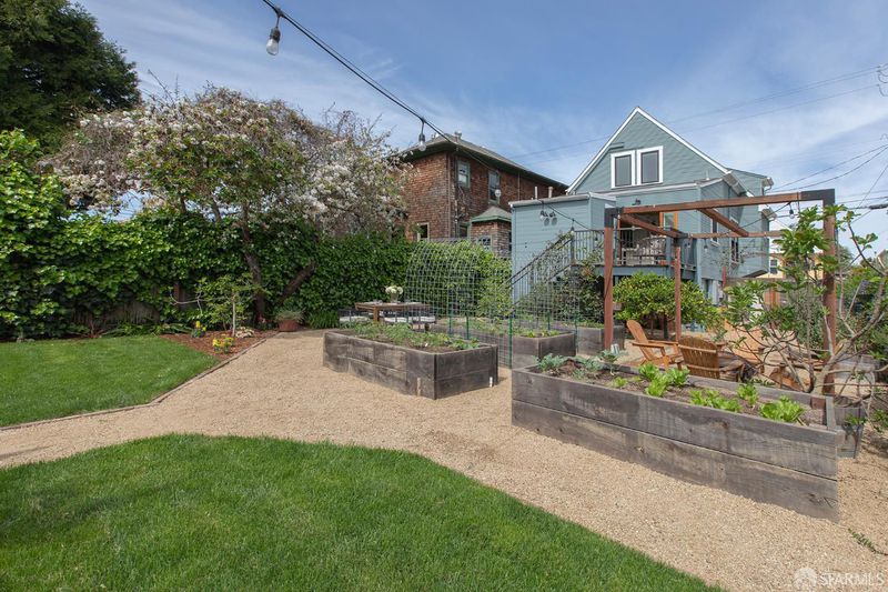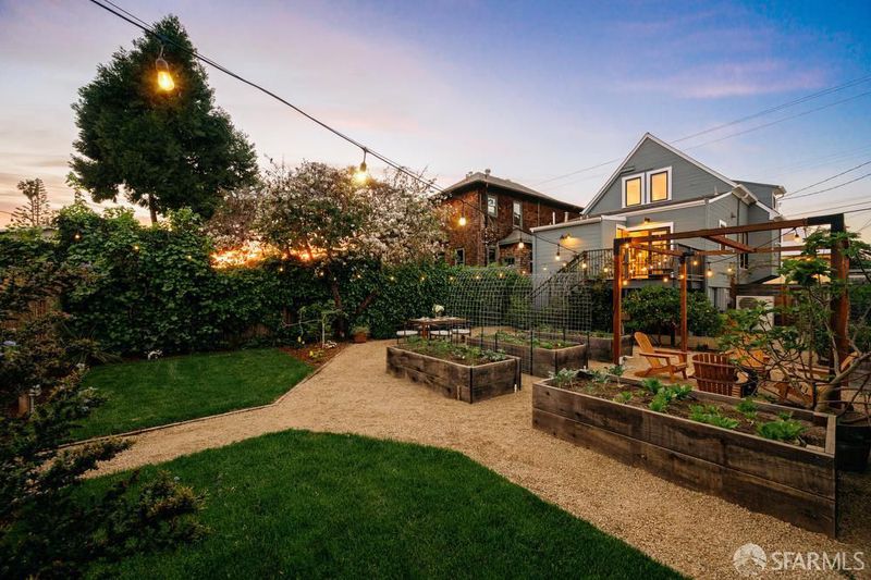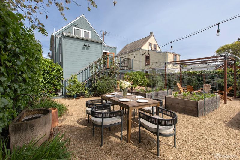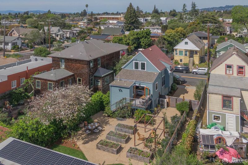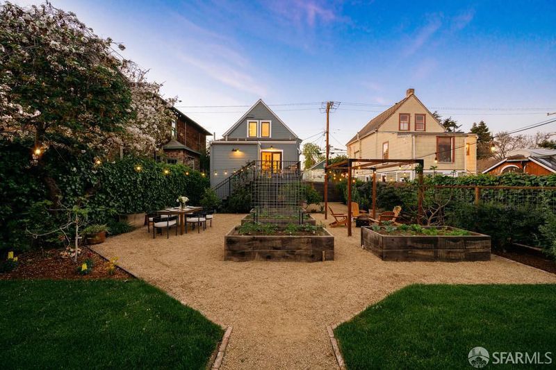 A rare Berkeley offering, this beautifully updated Victorian with a fully permitted ADU lives like a private compound set within an expansive, thoughtfully designed garden. The main residence features 2 bedrooms, a den, and 2 bathrooms, blending classic charm with modern updates. Refinished hardwood floors, a remodeled kitchen, and direct access to a private rear deck create an easy indoor outdoor flow that feels both functional and inviting. Owned solar, an efficient heat pump system, and a 10 out of 10 Home Energy Score bring meaningful long term efficiency to the home. The outdoor space is what truly sets this property apart. Set on a 6,615 sq ft lot, the backyard has been carefully designed to feel both open and purposeful. Gravel pathways, raised garden beds, a trellis, and multiple gathering areas create a setting that works equally well for quiet mornings, entertaining, or full scale outdoor living. It is rare to find this level of usable space with this much intention behind it. At the rear of the property, the fully permitted ADU offers approximately 466 sq ft of design forward living. With clean, modern finishes and a generous covered porch, it feels like a natural extension of the main home. Ideal for guests, extended family, or income potential. In total, the property offers 3 bedrooms plus a den and 3 bathrooms. A unique opportunity to own a flexible Berkeley property that pairs historic character with modern systems and exceptional outdoor space. Ideally located near San Pablo Park and Berkeley Bowl, with easy access to some of Berkeley's most loved neighborhood amenities. Home Energy Score: 10 out of 10.
