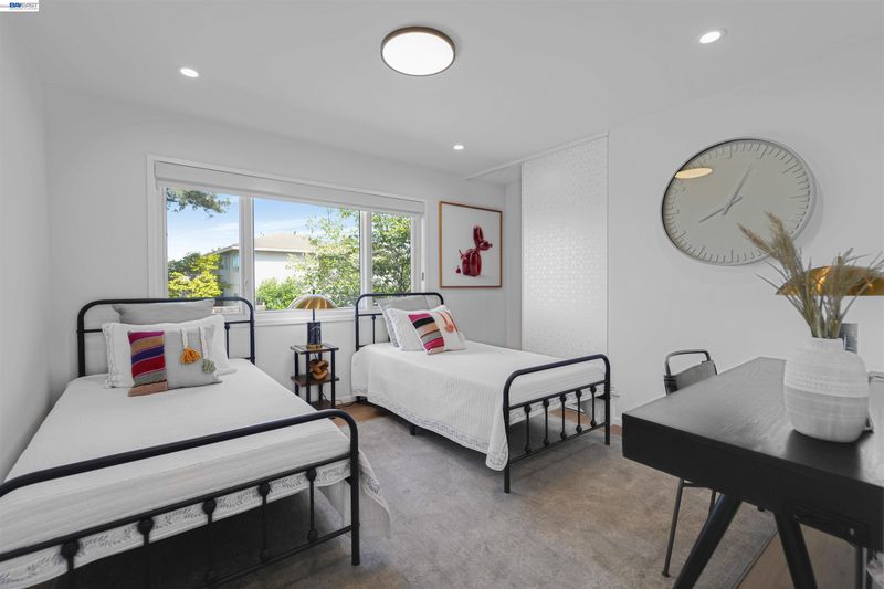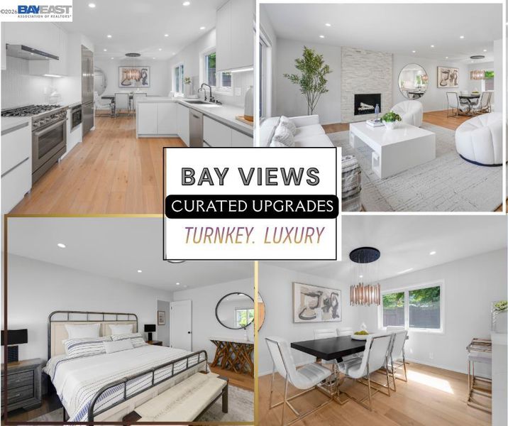 EXTENSIVELY UPGRADED WITH INTENTION AND QUALITY THROUGHOUT. Comprehensively renovated, this home showcases thoughtful improvements across every major system and living space. Structural upgrades include a NEW ROOF, NEW GUTTERS, and 20-PANEL SUNPOWER SOLAR SYSTEM (2022), along with FULL HOME INSULATION (attic and crawlspace), UPGRADED 200amp ELECTRICAL PANELS, ALL-NEW ELECTRICAL WIRING TO CODE, and a HIGH-EFFICIENCY HEAT PUMP SYSTEM WITH AC. Additional features include SMART THERMOSTATS, EV-READY 220V OUTLETS, ENGINEERED WOOD FLOORING AND RECESSED LED LIGHTING THROUGHOUT. The CHEF’S KITCHEN is beautifully appointed with CUSTOM CABINETRY, QUARTZ COUNTERTOPS, and a FULL SUITE OF BOSCH APPLIANCES, including a 36” GAS RANGE, COUNTER DEPTH BUILT-IN REFRIGERATOR, DISHWASHER, AND DRAWER MICROWAVE. Bathrooms have been RENOVATED WITH NEW TIMELESS SUBWAY TILE, MODERN FIXTURES, AND CUSTOM VANITIES, while the PRIMARY SUITE features a WALK-IN SHOWER for a more open, modern layout. The GARAGE FEATURES NEW EPOXY FLOOR (2025). BONUS ARCHITECTURAL PLANS FOR A FUTURE ADU, offering EXPANSION, UPSIDE POTENTIAL, multi-generational living. Enjoy sweeping BAY AND CITY VIEWS from a beautifully designed, FULLY USABLE LOT featuring BBQ, ENTERTAINING AREAS, A LUSH GRASS PLAY AREA, SERENE and MATURE TREES