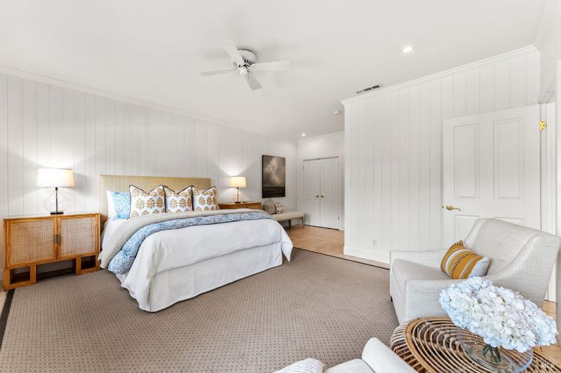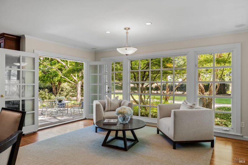 Moments from downtown St. Helena, along a quiet country lane, this private property is defined by a single-level main residence, detached guest house, and a landscape designed for gathering and connection. The main home is designed for everyday living, with light-filled interiors that connect naturally to the outdoors. A living room anchored by a gas fireplace and expansive windows flows into a thoughtfully equipped kitchen with Viking range, wine storage, dual dishwashers, and an island with prep sink and seating. The dining room, complete with a built-in bar, offers direct access to the outdoors, reinforcing the home's indoor-outdoor rhythm. Additional spaces include a media room, private office, and flexible-use areas. The primary suite opens to the rear patio and pool, with an adjoining space suited for an office, or gym. A second bedroom and multiple baths complete the main residence, while the detached guest house offers additional living spaces. Outdoors, mature redwoods and cedar frame the setting, with a broad lawn, bocce court, pool and spa, and multiple gathering areas. A well-equipped outdoor kitchen with fire feature and covered seating extends the living experience. This is a property designed for gathering, defined by privacy, and quietly positioned where Napa Valley begins to slow.