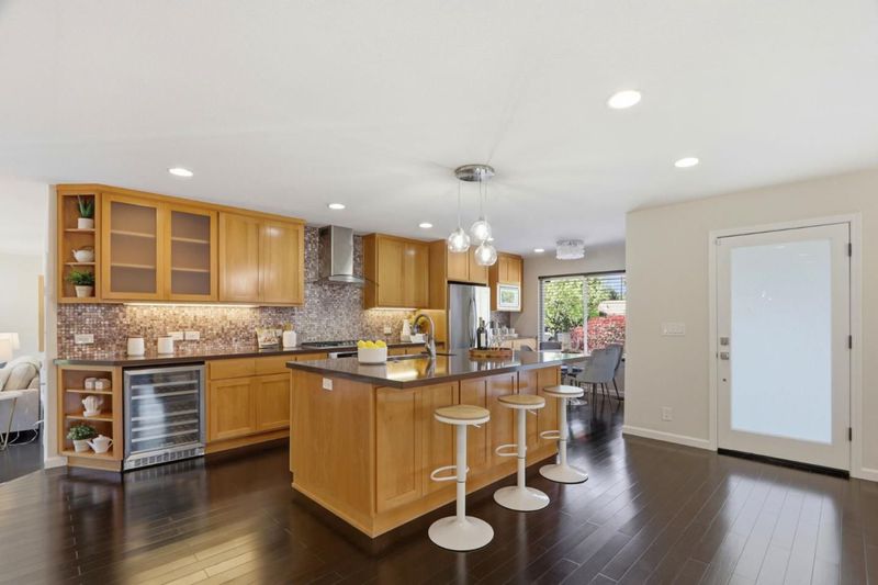 This beautifully updated single-story home offers comfort, style, and exceptional curb appeal with picturesque hill views. Inviting open floor plan showcases rich hardwood floors, recessed lighting, and a light-filled LR with French doors that frame the scenic surroundings, while the cozy family room is anchored by fireplace with a stacked-stone surround. The chefs kitchen featuring quartz countertops, maple cabinetry, a mosaic backsplash, and premium stainless steel appliances including LG, Whirlpool, and an EdgeStar beverage fridge. The serene primary suite offers private backyard access, walk-in closet, and a spa-inspired ensuite complete with a deep soaking tub and separate body-spray shower, Step outside to a true backyard oasis, where a painted wood deck, tranquil water feature, and covered pergola are surrounded by lush palms, bamboo, and Italian cypress, creating a private retreat perfect for relaxing or entertaining. Additional highlights include versatile side yards with tropical accents and a 16kw Generac generator, a two-car garage with epoxy floors and laundry area, Ecobee thermostat. Ideally located in Almaden Valley near Quicksilver County Park, Boulder Ridge Golf Club, and local shopping, and highly regarded schools including Simonds,Bret Harte & Leland.