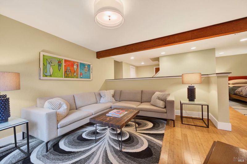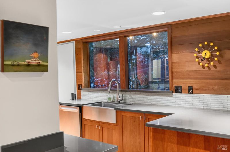 Tucked away down a quiet, tree-lined drive, this peaceful Glen Ellen retreat rests on 2.45+/- acres surrounded by gardens, paths, lounging decks and stonework patios. Its Mid-Century charm shines through beamed ceilings, bamboo floors, built-ins and wide picture windows that fill the home with natural light and views of the land and trees. The open, remodeled kitchen features quartz slab counters, cork floors, stainless appliances and farm sink, a roomy dining area and breakfast bar made for gathering. Both bedrooms look out to nature and one opens to a private deck; perfect for quiet mornings. Two refreshed tile bathrooms add comfort and style and include a spa tub with an outlook to nature. Thoughtful details include plenty of storage and indoor laundry. Outside, enjoy a detached hobby shed with a view deck, fenced garden and detached garage/workshop. With public utilities, ample parking and a location just blocks from downtown Glen Ellen, this is Wine Country living at its most relaxed. Only about 1 hour from San Francisco.