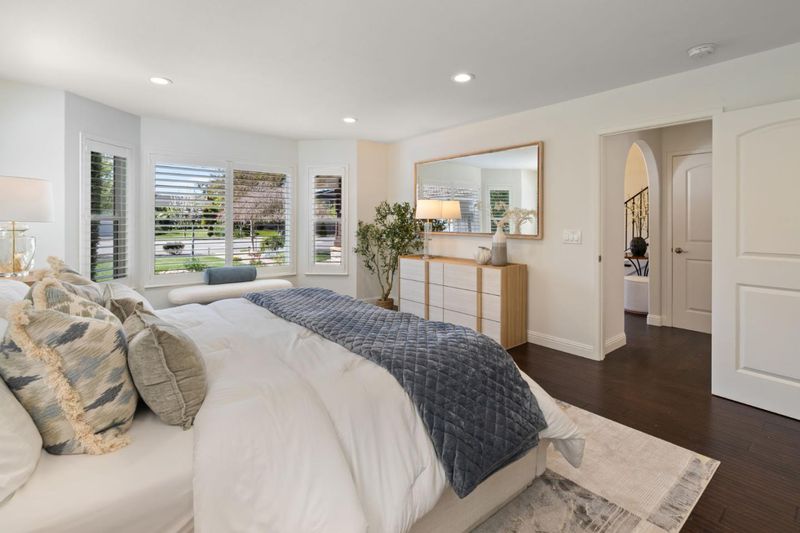 Stunning South Willow Glen custom home, meticulously rebuilt in 2018 with premium materials, designed for indoor-outdoor living. Grand entry with a dramatic staircase opens to an impressive foyer where a statement chandelier sets an elegant tone. Sun-drenched great room with skylight flows into the chefs kitchen with quartz countertops, custom cabinetry, Thermador appliances, and walk-in pantry. An oversized island with wine fridge overlooks the dining area and family room, perfect for everyday living and entertaining. A separate living room adds flexibility and elegance. Designed with versatility, the home features a rare dual primary layout with 2 spa-inspired suites, each appointed with rain showers, dual vanities, Hansgrohe fixtures. The large main-level suite offers a soaking tub and walk-in closet. The upstairs retreat offers his-and-hers closets and serene treetop views. Owned solar, EV ready, dual climate control, separate water heaters, water softener, updated electrical, plumbing, and HVAC, 50-year roof and epoxy garage. The private backyard is thoughtfully designed with custom fire pit island, outdoor kitchen, water fountain, TV and Bose sound system. Minutes to DT Willow Glen, parks, Schallenberger Elementary, Hacienda Magnet School, and Oakridge Mall with 99 Ranch.