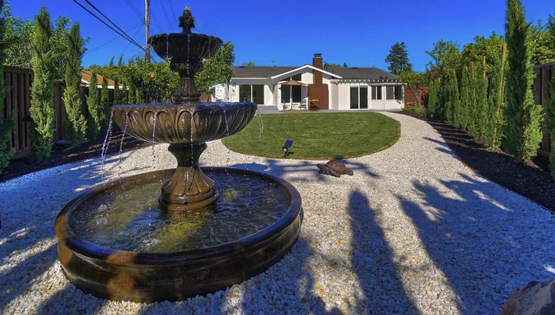 East facing expanded, vaulted, and thoughtfully updated, this approximately 1,785 sq ft home offers four spacious bedrooms and two beautifully remodeled designer bathrooms on an approximately 11,875 sq ft lot. Major system upgrades include updated HVAC with heating and air conditioning, plus an updated water heater. The refreshed kitchen features painted cabinetry, updated cooktop, updated refrigerator and dishwasher, & luxury vinyl flooring extending through the kitchen, dining area, bathrooms, and addition. Both bathrooms have been remodeled with cohesive designer finishes, including updated vanities, mirrors, lighting, plumbing fixtures, and upgraded shower features with exotic slabs in shower enclosures floor to ceiling. Interior improvements include whole-house paint, updated bedroom lighting, updated hardware, new baseboards, & refined trim detailing. The finished garage features drywall, fresh paint, and epoxy flooring. Outside, enjoy professionally maintained landscaping with extensive irrigation, a custom fountain, expansive driveway parking with room to turn around, mature fruit trees, and an evergreen privacy border. Convenient Santa Clara location near Millikin Elementary and major tech campuses including Apple, Nvidia, ServiceNow, Intel, AMD, and Palo Alto Networks.