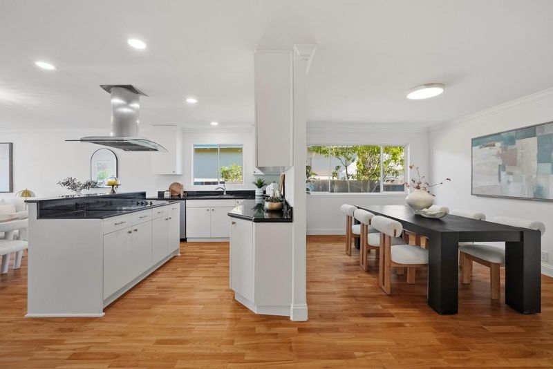 This stunning waterfront home in desirable Foster City offers a spacious single-level floor plan filled with natural light and expansive windows framing serene lagoon views. French doors connect the living space to a beautifully updated backyard and patio, creating seamless indoor-outdoor living. The open-concept living, family, and dining areas flow into a remodeled chef's kitchen featuring high-end appliances, freshly painted cabinetry, and an oversized quartz island. The interior has been freshly painted and enhanced with new light fixtures for a modern touch. All bathrooms have been remodeled with stylish finishes. Hardwood flooring runs through all four bedrooms, including a generous primary suite with water views, walk-in closet, and direct access to the refreshed deck. Exterior upgrades include a newly painted front door and deck. The backyard features a modern paver patio, mature landscaping, and a unique cactus garden, offering a peaceful waterfront retreat. Ideally located near parks, top-rated schools, and scenic trails, this home captures the essence of Foster City living.