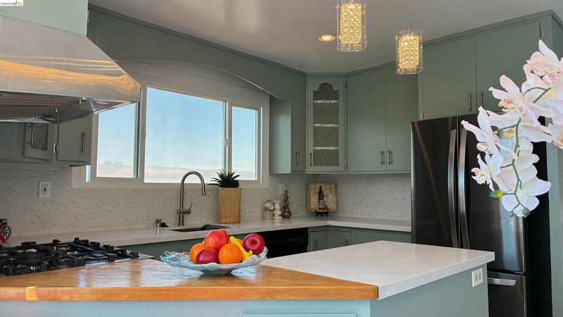 Enjoy breathtaking water views of the SF Bay, Bay Bridge, and Golden Gate Bridge from this traditional yet beautifully updated home, ideally located in the desirable Upper Rockridge neighborhood—known for its excellent schools and peaceful surroundings. The recently renovated kitchen features elegant cabinetry, quartz-style countertops, and modern crystal lighting that adds a touch of sophistication. A newly constructed ADU (approx. 300 sq. ft.) with a full bath provides flexible living space and offers both interior and private backyard entrances. Architectural details abound, from dramatic wood beam ceilings to gleaming oak hardwood floors. Additional highlights include dual-pane windows, freshly painted interiors, and a remote-controlled two-car garage with interior access. Fruit trees, plants in the fully fenced back yard. How pleasant it is to sit ion the deck shaded by greenery chat with family or friends over a tea.