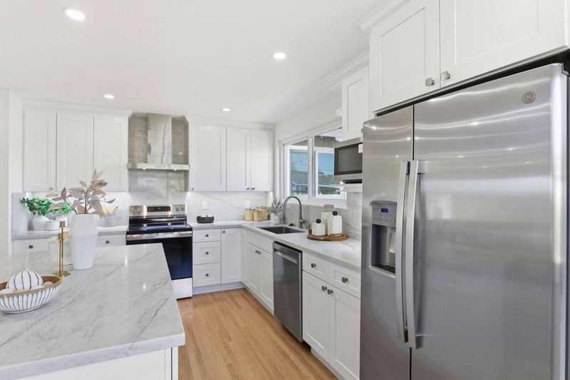 Beautifully updated 4 bedroom, 3 bath home on over 9,000 square foot corner lot. Fully remodeled, this home offers a brand new kitchen with center island, new stainless steel appliances and quartz countertops. Large living room/dining room combination overlooks refaced fireplace. Main level has newly refinished hardwood floors throughout with 3 bedrooms and 2 baths. Downstairs you will find the 4th bedroom, perfect for teenager, in-law suite or rental. It features its own kitchenette, laundry and bath with separate entrance from the exterior. Completing this level is a massive 30 foot by 17 foot recreation room with fireplace. Step outside and you will find one of the best parts of this property, an expansive yard that offers something for everyone. Professionally landscaped with large area to work on cars or your RV. Raised garden beds and fruit trees for gardeners and plenty of lawn and spacious patio for kids, entertaining or just relaxing. Additional upgrades include new roof, dual paned windows, recessed lighting throughout, furnace, refinished hardwood floors plus new laminate flooring in the rec room, epoxy floors in the 2-car garage. This home is absolutely the best value in Santa Clara! Great location close to freeways, Silicon Valley employers, parks, schools, shopping.