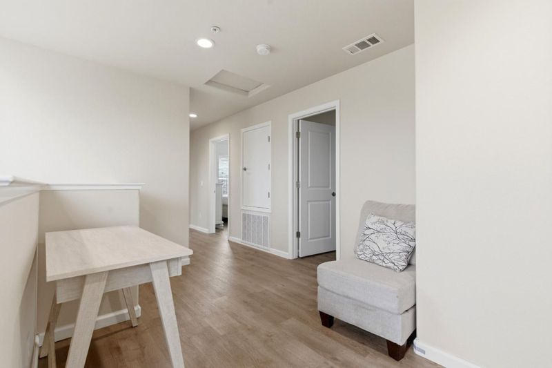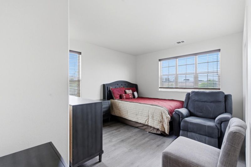 Located in the desirable Mills Ranch community, this like-new two-story home offers a premium corner lot, modern finishes throughout, and a beautifully maintained setting along a tree-lined street with mature landscaping. The thoughtfully designed floor plan features tile flooring on the main level and luxury vinyl plank upstairs, with no carpet throughout. The main level includes a spacious great room that opens to the kitchen, creating an ideal layout for both everyday living and entertaining. The primary suite is conveniently located downstairs and features a double vanity, large walk-in closet, and a separate tub and shower. Additional main-level features include a laundry room with a folding counter, half bath, and a large linen closet. Upstairs offers three additional bedrooms, a full bathroom, a versatile bonus area perfect for a playroom or study, and an additional linen closet for ample storage. The backyard is finished with concrete, providing a low-maintenance outdoor space ideal for relaxing or entertaining.